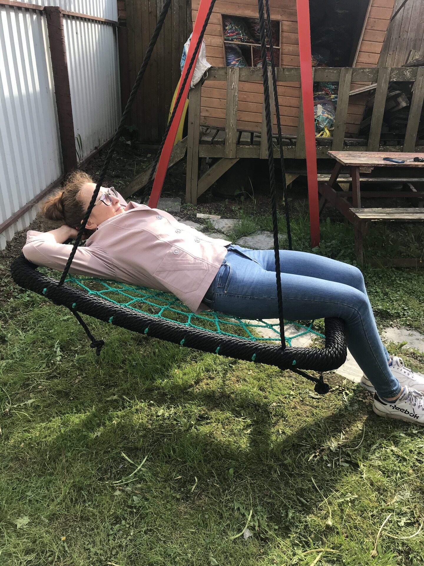 ► Максимальная нагрузка на качели-гнездо 250 кг – на наших качелях сможет качаться вся семья.